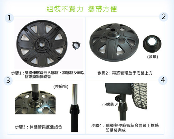 ●三段風速強、中、弱,高度可伸縮調整