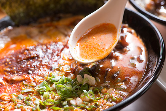 以大骨熬製細膩豚骨湯頭,溫潤鮮醇,加入辛子的香辣口感,細細感受湯汁在唇齒間的誘人品味,無論佐以何種風味調製,都能呈現獨一無二的拉麵精髓。